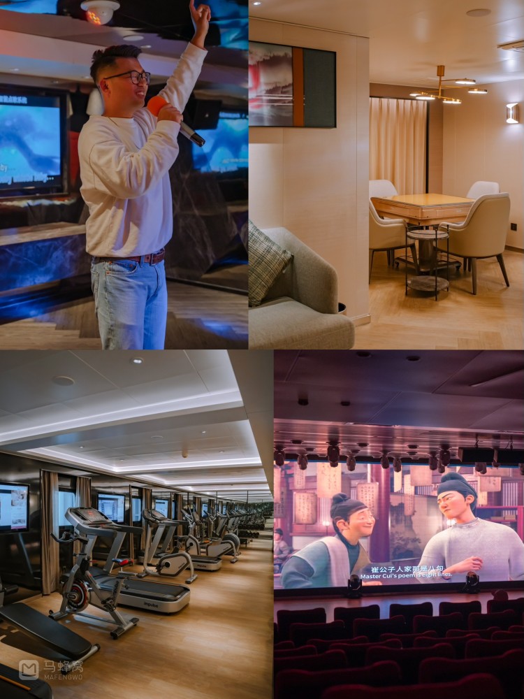 除配套的酒吧、电影院、棋牌室、健身房、spa按摩、购物区外,还会安排舞会,文化活动等船上活动,非常丰富,完全不用担心无聊。